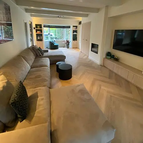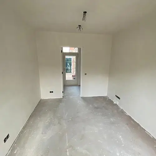 Het werk startte in week 9-2024 en is ca 14 weken later opgeleverd. De aanbouw betreft een twee laags aanbouw met een gebroken kap zoals bestaande woning. De verbouwing van de begane grond startte nadat de aanbouw wind en waterdicht was en is de houtenvloer vervangen voor een PS-combinatievloer afgewerkt met beton, vloerverwarming en een CD-vloer.