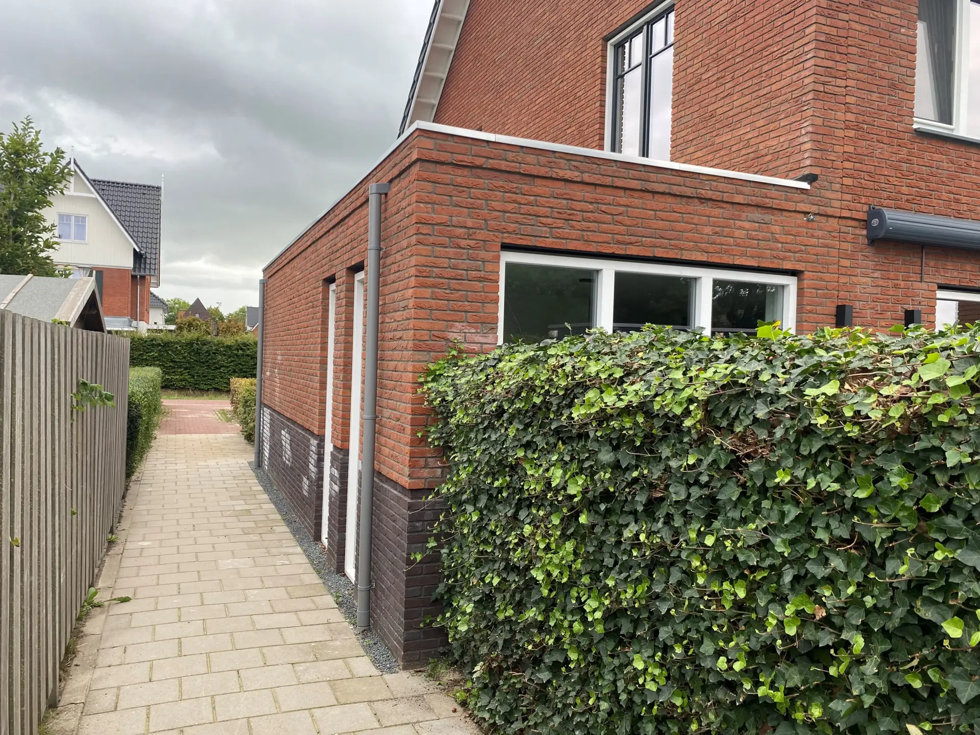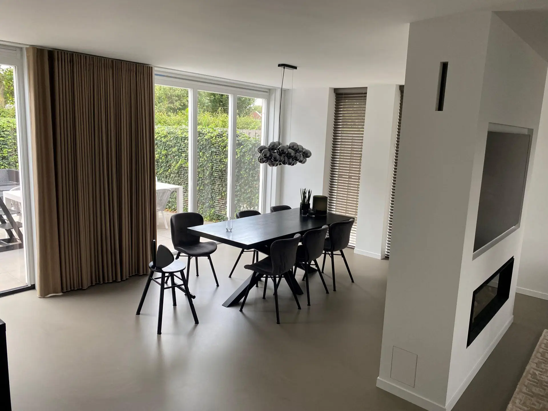 De gashaard in het midden van de living is de scheiding tussen de zithoek en de eetkamer. Omdat deze woning nog niet heel lang geleden was opgeleverd hebben wij de zelfde gevelstenen kunnen inkopen en lijkt het alsof het vanaf de nieuwbouw is meegebouwd.