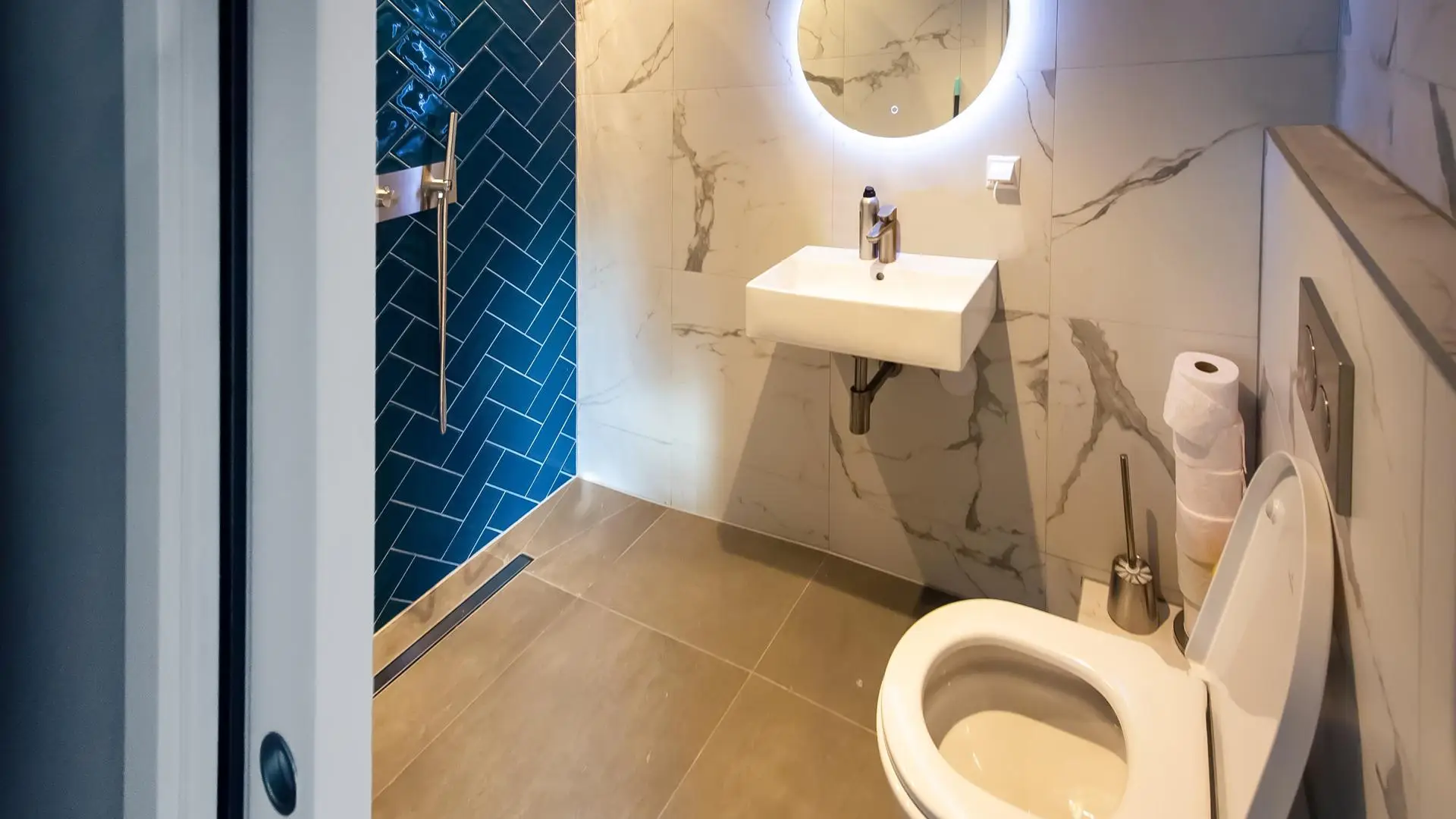 Alle sanitaire voorzieningen worden vernieuwd. Het toilet en de badkamers worden vergroot. Er komt een open keuken met eetkamer en alle wanden en plafonds wordt met glad pleisterwerk afgewerkt en in kleur gesaust.
