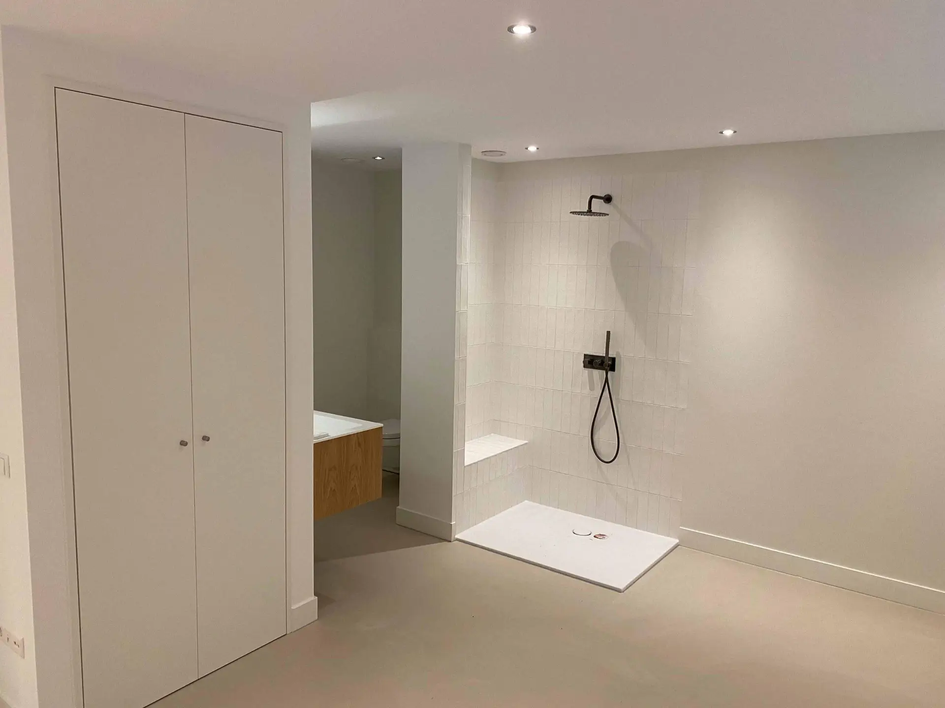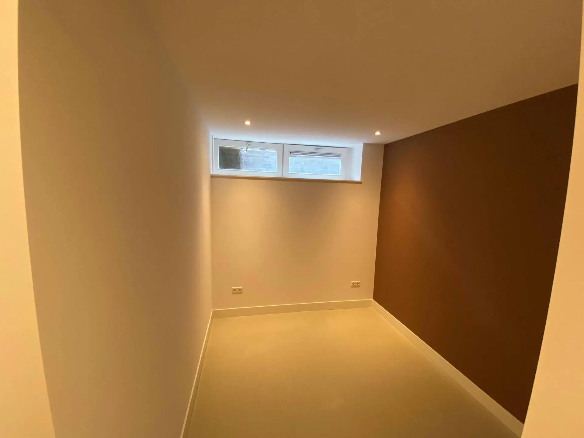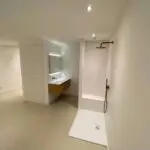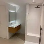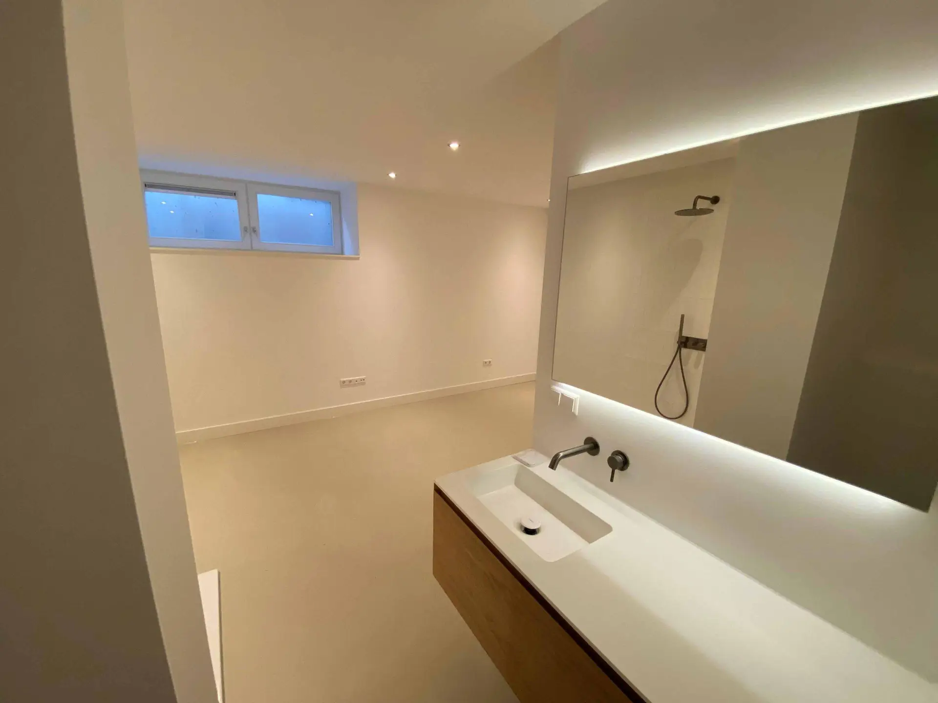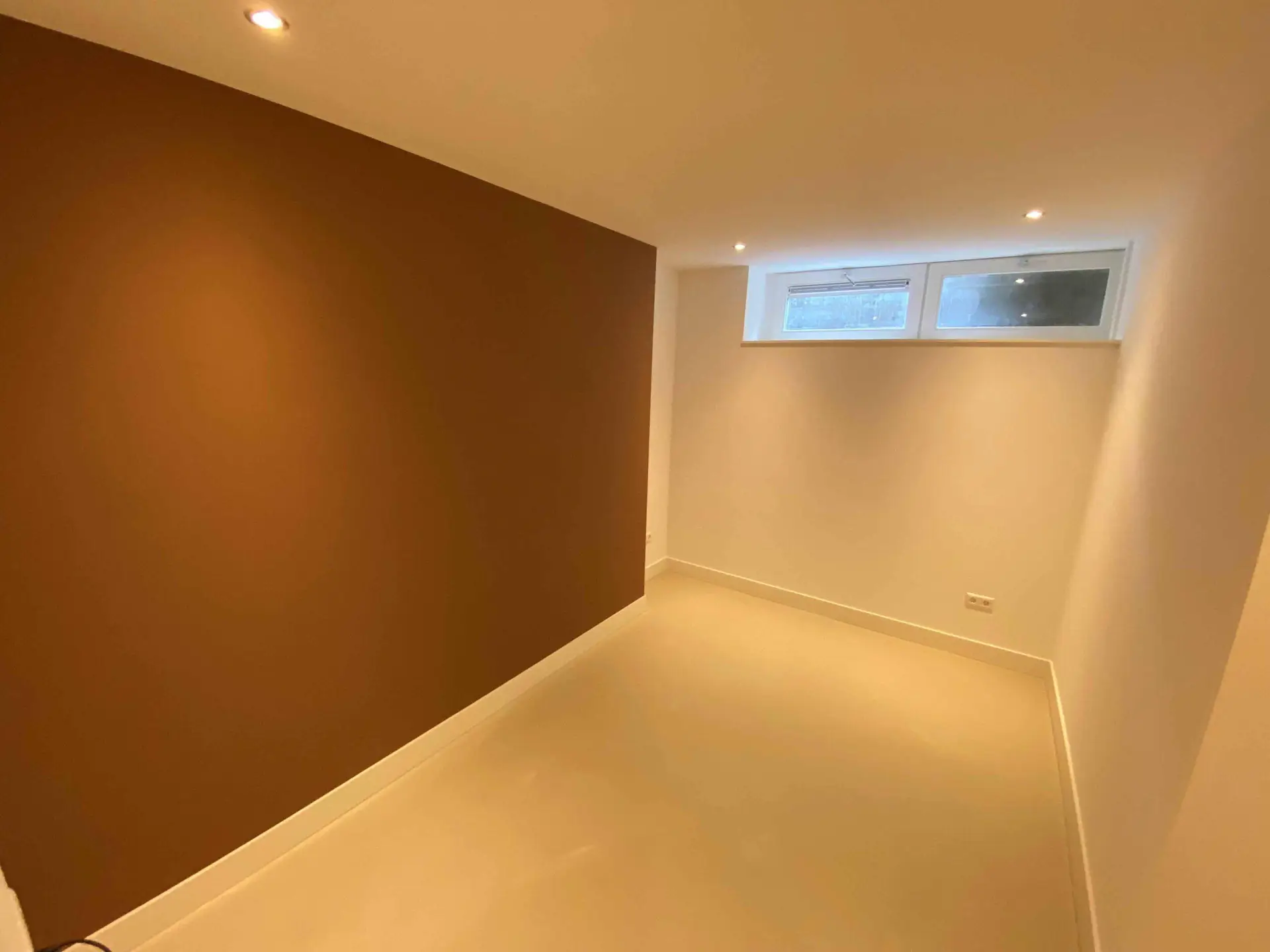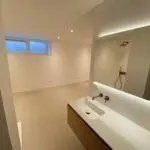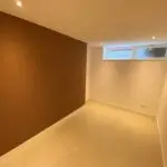 Na het slopen van alle elementen in zowel de kelder als de tuinkamer tot op de betonnen constructie, hebben we enkele wekenlang een ontvochtiger in de kelder geplaatst om de betonnen constructie volledig te laten drogen. Na het drogen hebben we vloerverwarming aangebracht en de vloer voorzien van een coatingvloer. Vervolgens hebben we binnenwanden geplaatst, inclusief alle benodigde installaties, en is het verlaagde plafond geïnstalleerd. Alle wanden en plafonds zijn afgewerkt en klaargemaakt voor schilderwerk. Onze schilders hebben het geheel na droging geschilderd. Voor de twee kleinere ruimtes, de waskast en de pompput, zijn schuifdeuren geïnstalleerd om de kelder efficiënter in te richten.