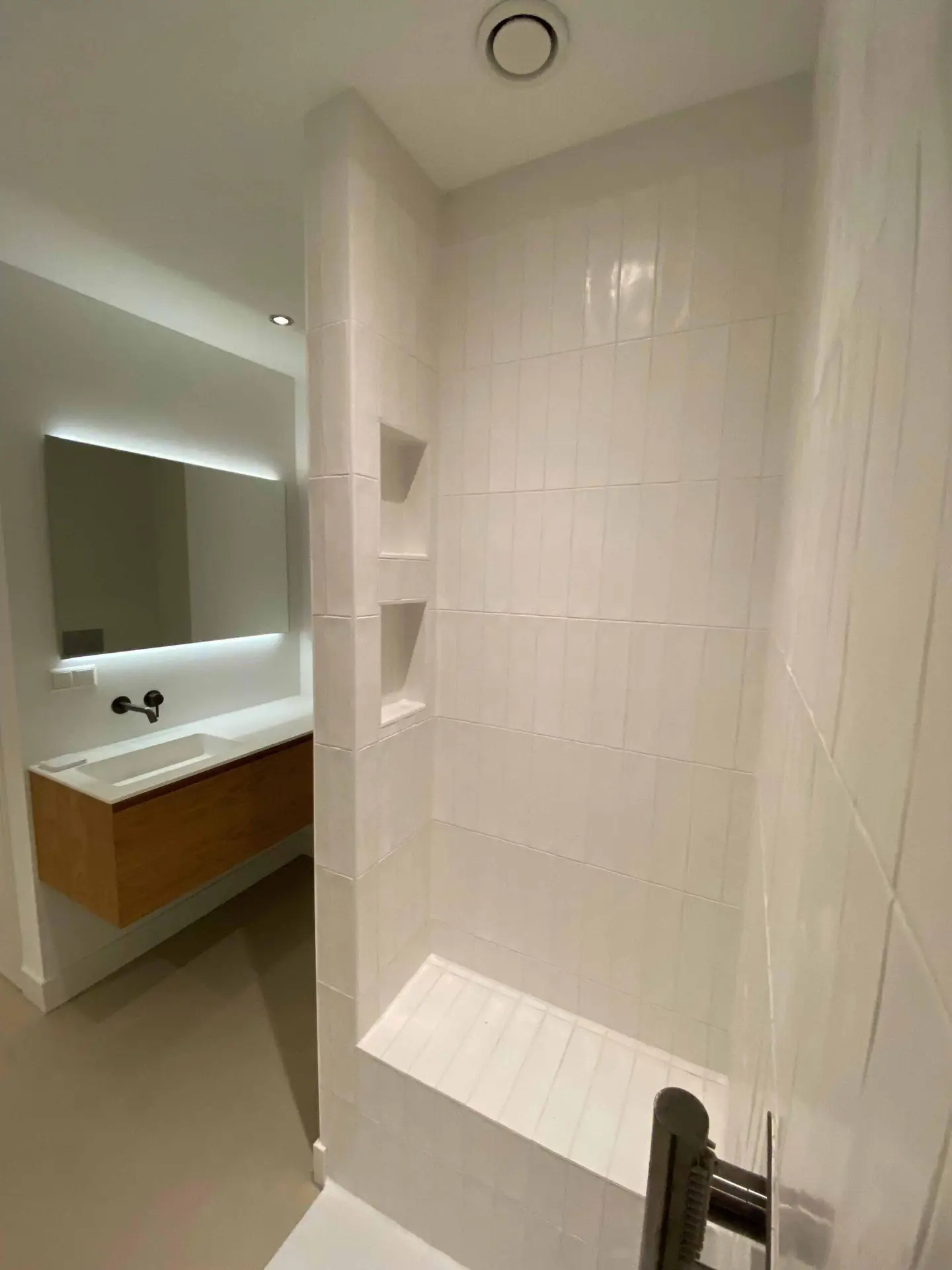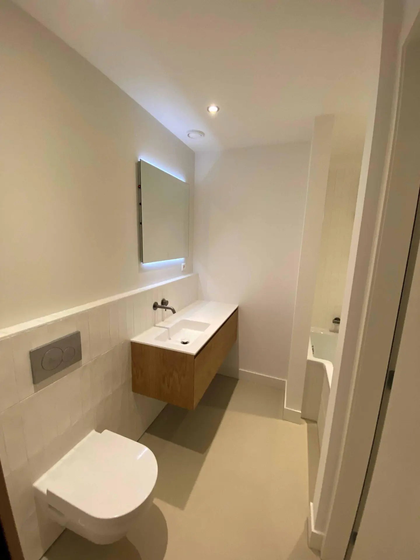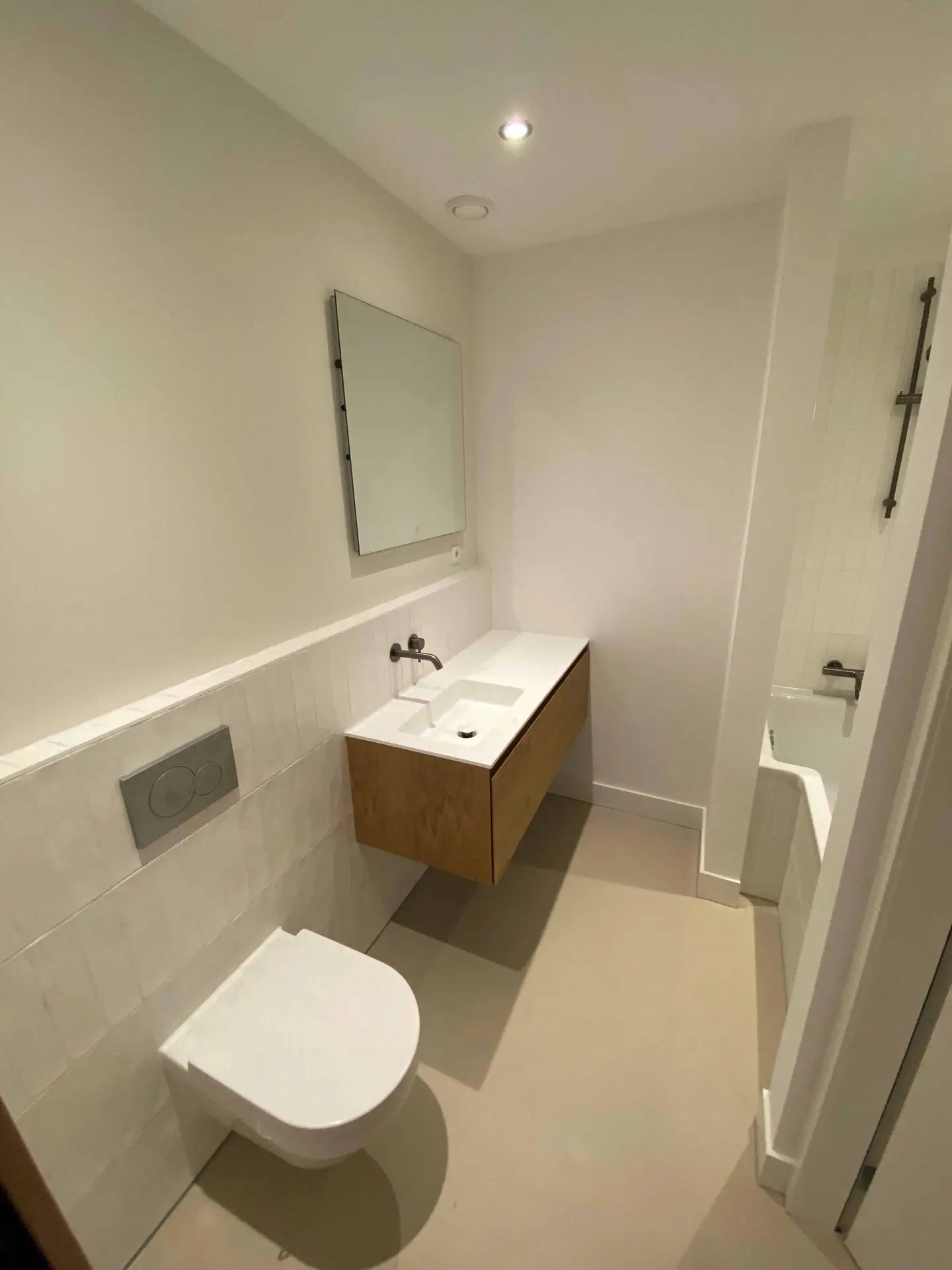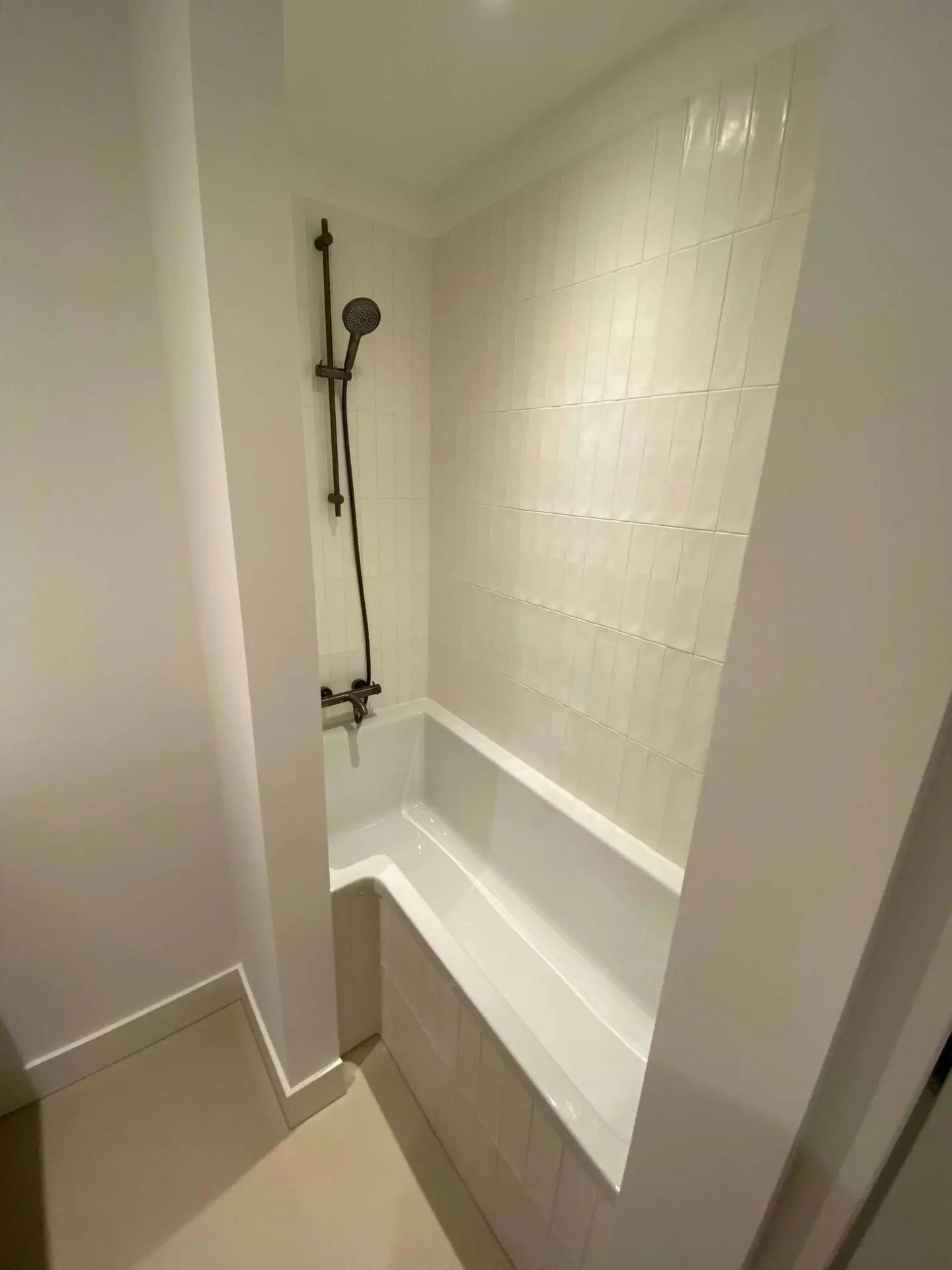 Na het slopen van alle elementen in zowel de kelder als de tuinkamer tot op de betonnen constructie, hebben we enkele wekenlang een ontvochtiger in de kelder geplaatst om de betonnen constructie volledig te laten drogen. Na het drogen hebben we vloerverwarming aangebracht en de vloer voorzien van een coatingvloer. Vervolgens hebben we binnenwanden geplaatst, inclusief alle benodigde installaties, en is het verlaagde plafond geïnstalleerd. Alle wanden en plafonds zijn afgewerkt en klaargemaakt voor schilderwerk. Onze schilders hebben het geheel na droging geschilderd. Voor de twee kleinere ruimtes, de waskast en de pompput, zijn schuifdeuren geïnstalleerd om de kelder efficiënter in te richten.