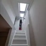 Op de zolder hebben wij het door derden geplaatste dakkapel geheel afgewerkt met gips, stukwerk en schilderwerk. Wand en schuifdeur tussen nieuwe slaapkamer en trapopgang geplaats. CV ketel en MV box verplaatst naar zolder. In het dak boven de trap naar zolder hebben wij een dubbel dakraam van Velux geplaatst en afgewerkt.