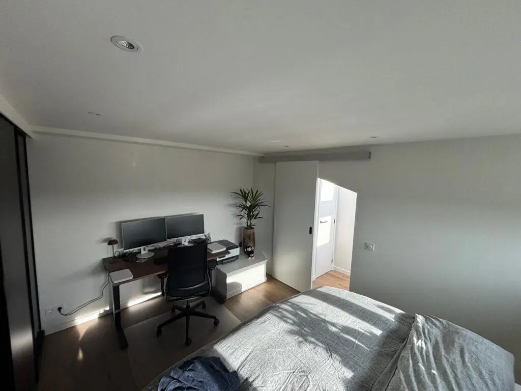 Als kers op de taart is de slaapkamer voorzien van een op maat gemaakte kledingkast met schuifdeuren en afgewerkt. Daarna is de volledige zolder geschilderd door onze eigen schilders. Opdrachtgever is zeer tevreden wat heeft geresulteerd in twee nieuwe klanten in dezelfde straat.