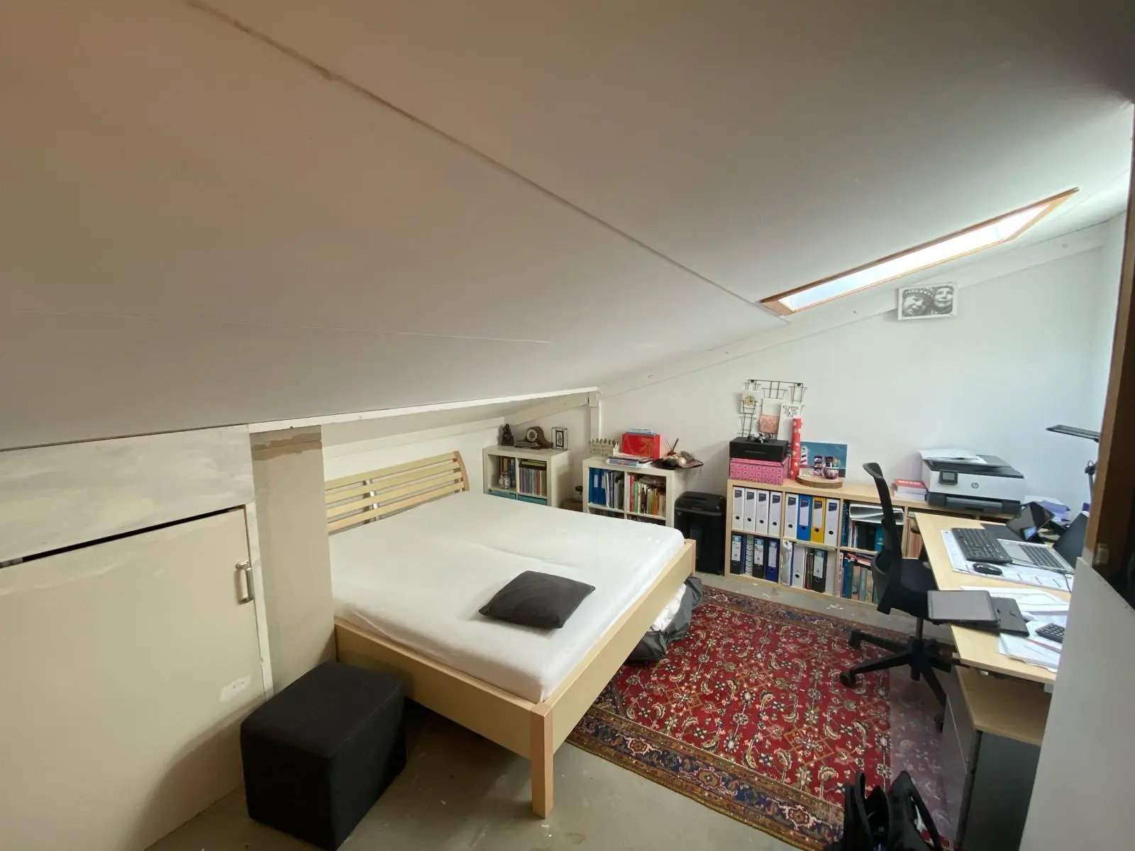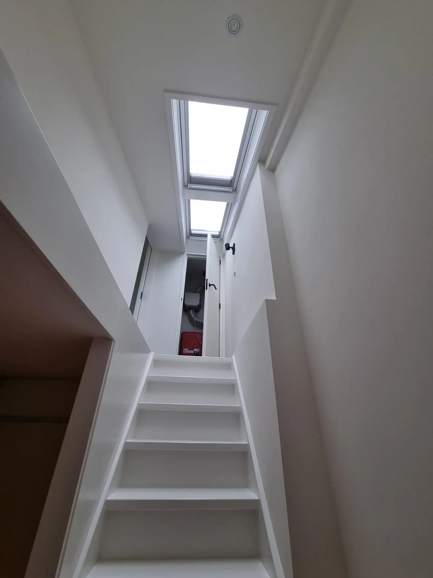 Op de zolder hebben wij het door derden geplaatste dakkapel geheel afgewerkt met gips, stukwerk en schilderwerk. Wand en schuifdeur tussen nieuwe slaapkamer en trapopgang geplaats. CV ketel en MV box verplaatst naar zolder. In het dak boven de trap naar zolder hebben wij een dubbel dakraam van Velux geplaatst en afgewerkt.