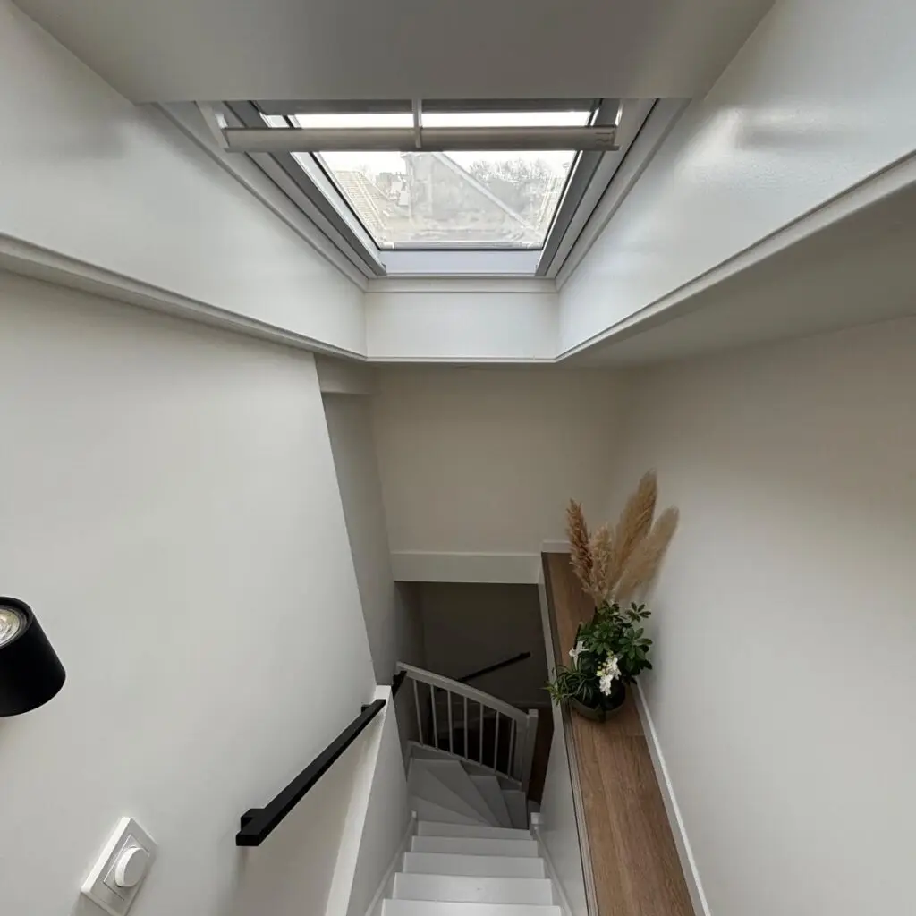 Aan de Cezannehof 43 te Hoorn hebben wij de trapopgang en de zolder een grondige opknapbeurt gegeven. Om beneden te beginnen hebben wij de trap gerenoveerd met overzettreden en schilderwerk. Het plafond van de entree hebben wij verlaagd, gestukadoord, geschilderd en voorzien van LED-spots. Op de eerste verdieping zijn alle wanden en plafond gestukadoord en geschilderd. Trap naar zolder volledig opnieuw geschilderd.