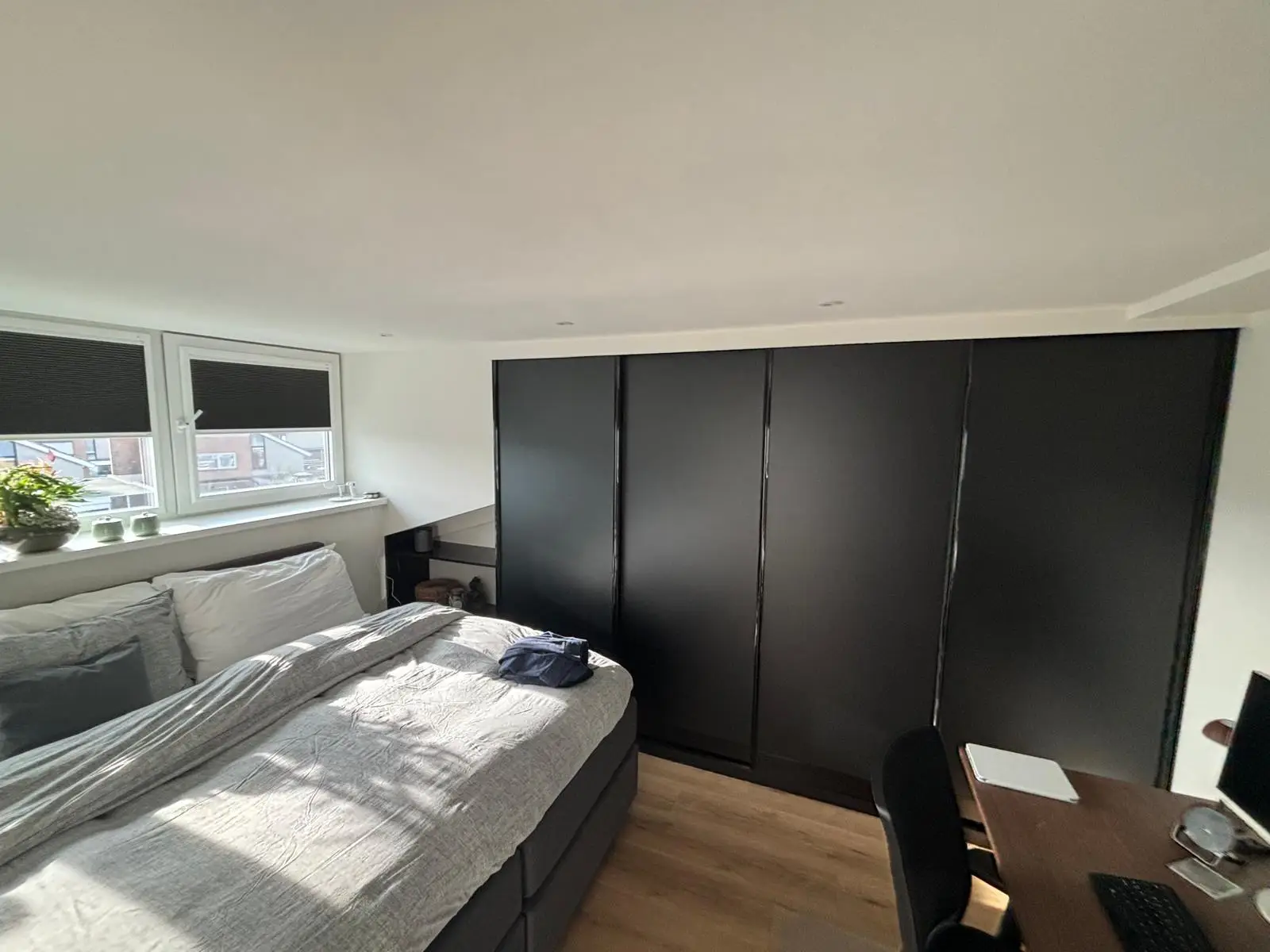 Als kers op de taart is de slaapkamer voorzien van een op maat gemaakte kledingkast met schuifdeuren en afgewerkt. Daarna is de volledige zolder geschilderd door onze eigen schilders. Opdrachtgever is zeer tevreden wat heeft geresulteerd in twee nieuwe klanten in dezelfde straat.