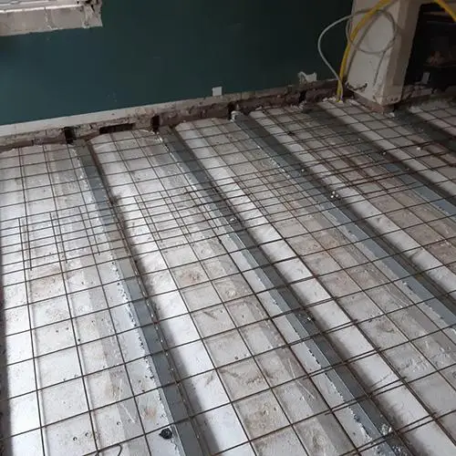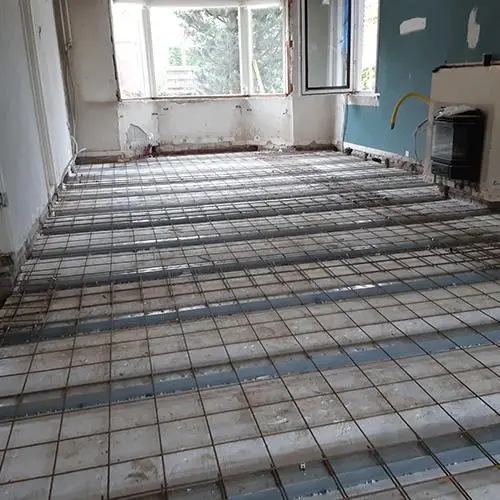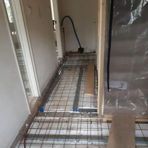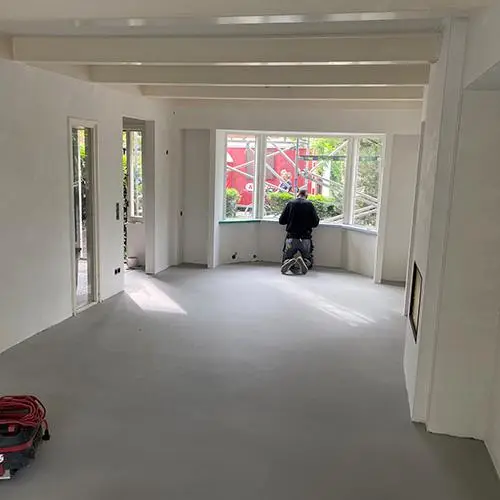 Houten vloer begon door te zakken en werd gevaarlijk door houtrot in de balklaag. De opdrachtgever wilde dat meteen rigoureus aanpakken met het laten vervangen van de houten vloer voor een PS-combinatievloer beton. Hiervoor hebben wij de stalen renovatie vloersysteem van VBI toegepast met stalen liggers en PS-isolatie vloerelementen. Daaroverheen een laag beton gestort, vloerverwarming en een nieuwe CD-vloer aangebracht.